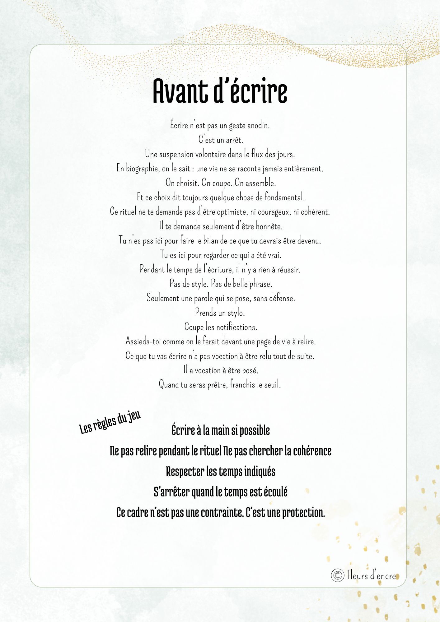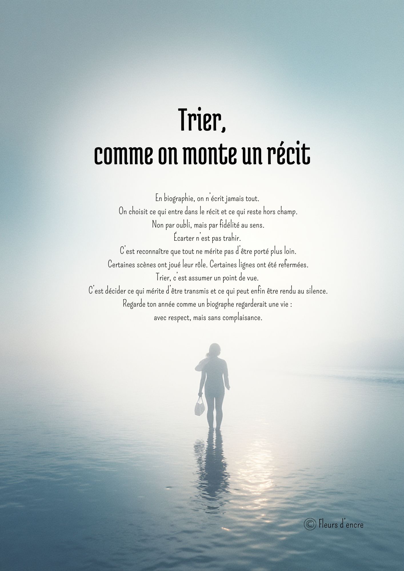 Le Seuil est un rituel d’écriture conçu pour celles et ceux qui veulent commencer l’année autrement qu’avec des résolutions. En quelques pages, il propose un temps d’arrêt guidé par l’écriture, pour regarder ce qui a été vrai, trier ce qui mérite d’être gardé, et formuler la phrase qui ouvrira le chapitre à venir.