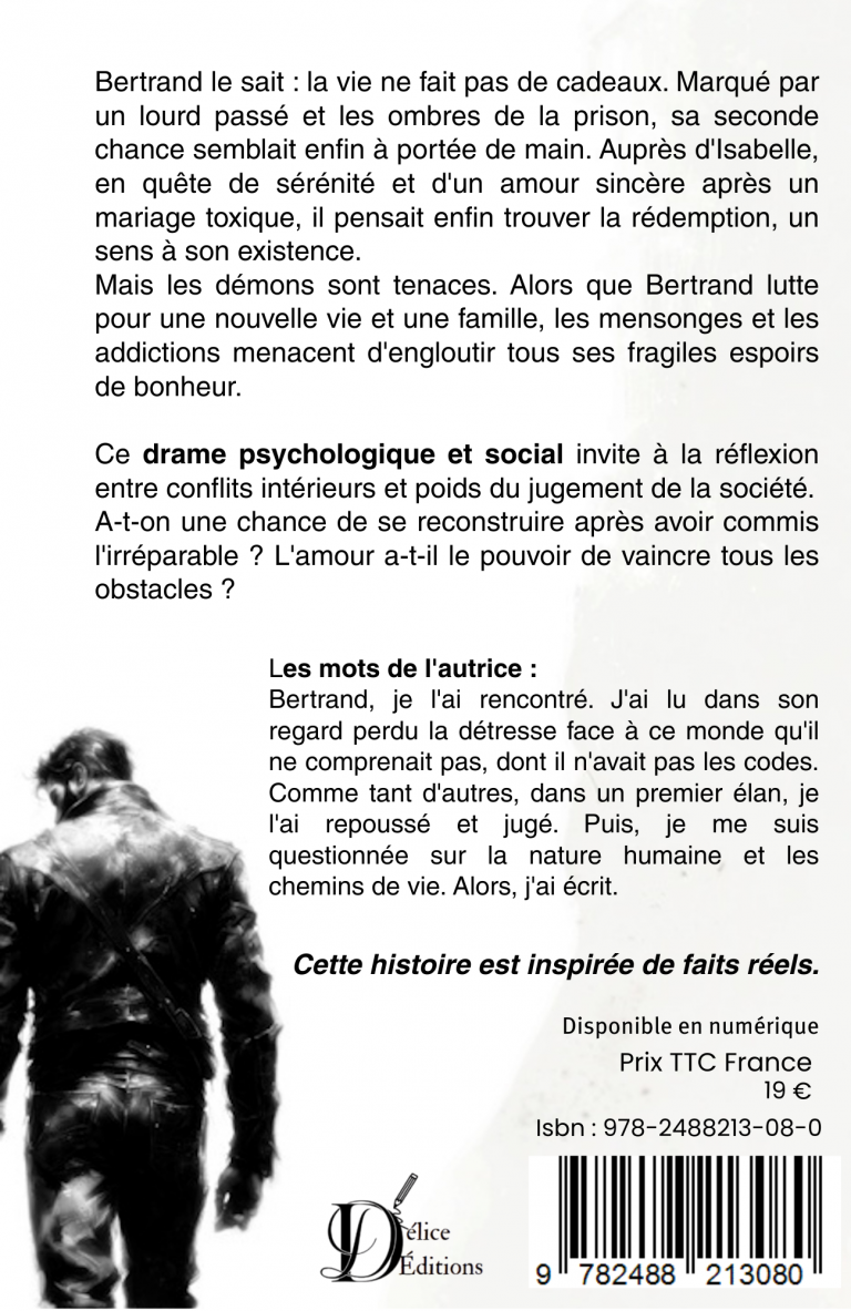 Auprès d’Isabelle — elle-même en quête de sérénité et d’un amour sincère après un mariage toxique — il croyait trouver la rédemption et un sens à son existence.Mais les démons sont tenaces. Entre mensonges, addictions, alcool et drogue, Bertrand affronte ses propres ombres. Alors qu’il rêve de rencontre, de reconstruction et de famille, ses failles risquent de tout engloutir.