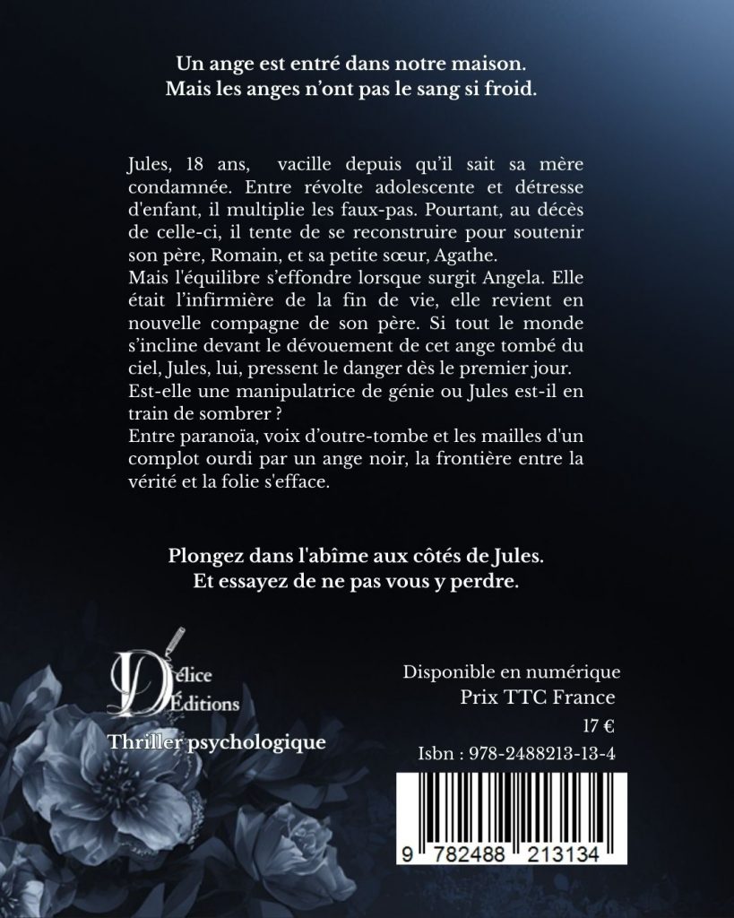 Jules a dix-huit ans quand sa vie bascule. Après le décès de sa mère, son père, Romain, ramène Angela à la maison. Douce, dévouée, parfaite… elle est l’infirmière idéale. Mais sous son sourire angélique, Jules perçoit une ombre que personne d’autre ne voit.